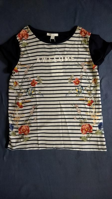 Футболка Springfield. Размер ХС, замеры на фото. Перед сделан будто из стрейчшифона, спинка - трикотаж Отправлю по Новой почте после оплаты