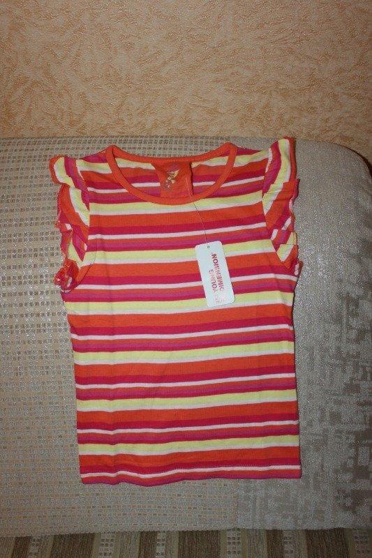 Нова футболка на дівчинку 4-5 років, Яскраві у складі котон. Склад: 100% бавовна. Виробництво Ірландія. Заміри 4/5 років у кольорову смужку: довжина 43 см, ПОГ 28 см.