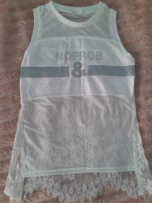 Футболка сіточка + кружево, ніжна і якісна! Переливається на сонці. Одягнули 1 раз.