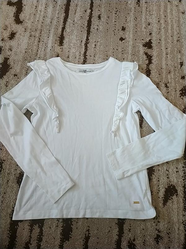 чудова, з оборкою біла футболка. Котон і Модал! пог-37,5 см рукава56 см довжина 52 см