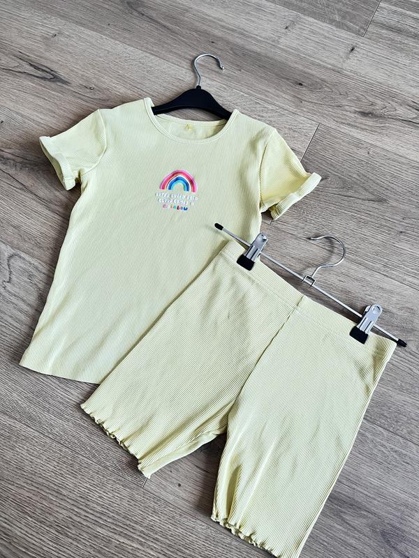 Костюмчик для дівчинки з шортиків та футболочки Розмір:110-116 Довжина футболочки:42 Напівобхват: від 27 до 42 Довжина рукавчика:11 Довжина шортів:28 Напівобхват талії: від 25 до 42 Напівобхват стегон: від 27 до 45 Матеріал: еластичний котон Якщо треба додаткова інформація, завжди рада допомогти ❤️