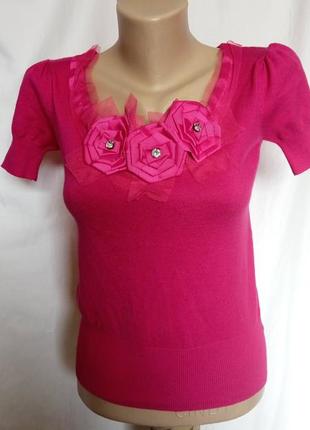гарна,колір як на фото рожевий,трикотаж приємний до шкіри,довжина54,пог42 тягнеться50,довжина рукав20см