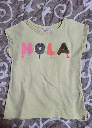 футболка для дівчинки, світло жовтого кольору, з паєтками, що перевертаються