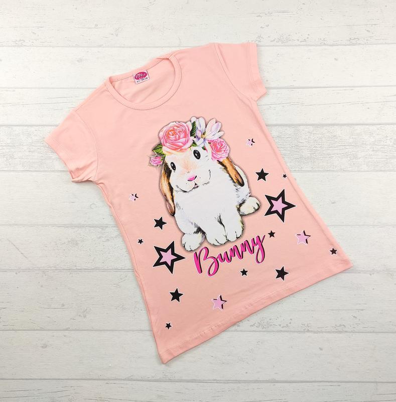 Футболка для дівчинки персикова та рожева з принтом "зайка" туреччина