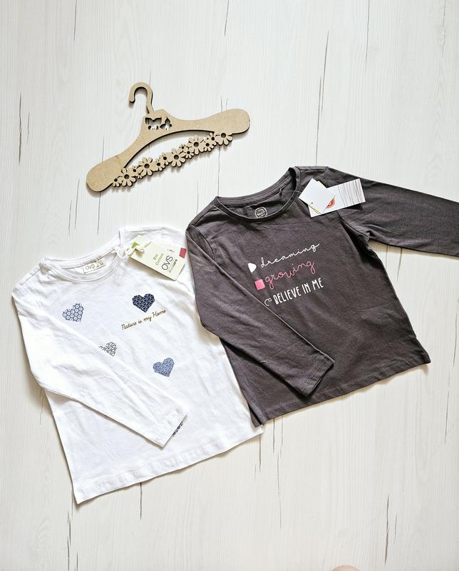 Нові лонгсліви від італійського бренду OVS та польського Cool Club Тканина: бавовна Розмір: 110см (4-5років) Заміри: Довжина 42-43см Напівобхват грудей 31см Довжина рукава від плечового шва 36-37см Ціна за 1шт.: 230грн Є інші лонгсліви в цьому розмірі для дівчат та хлопчиків та в розмірах від 68см до 180см. Запитуйте.