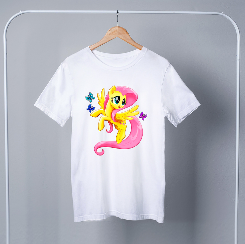 ФП012632 Футболка біла дитяча з оригінальним принтом "My Little Pony. Понівіль. Pony. Флаттершай" Push IT !!!У НАЯВНОСТІ ВСІ РОЗМІРИ!!! Стильна брендова футболка із крутим принтом. Футболка з бавовни для приємного повсякденного носіння. Друк наноситься цифровим способом, тому принт витримає велику кількість прань і добре пропускає повітря до тіла. Надруковано у друкарні "Кавун". Бавовняні футболки з принтами зручно носити як влітку, так і взимку. Вироби підходять як для чоловіків, так і для жінок.