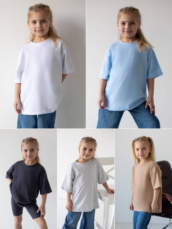 Дитяча футболка стрейчева оверсайз, бавовняна велика вільна футболка унісекс