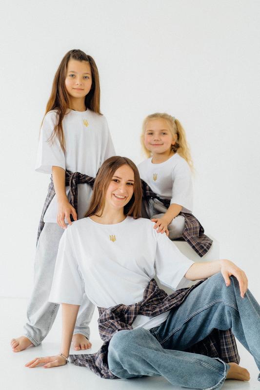 Футболка для дівчат "oversize" з патріотичною вишивкою гербом, тризубом в двох кольорах та...