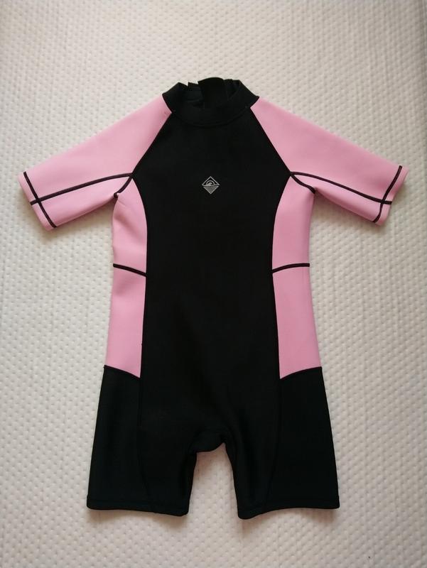 В дуже хорошому стані. Товщина неопрену 1,5 мм. На вік 9-10 років. Висота від плеча до низу 70 см, до паха 61 см. Від горловини до паха 55 см. Під руками 36 см. Півобсяг пояса 33 см, бедер 39 см