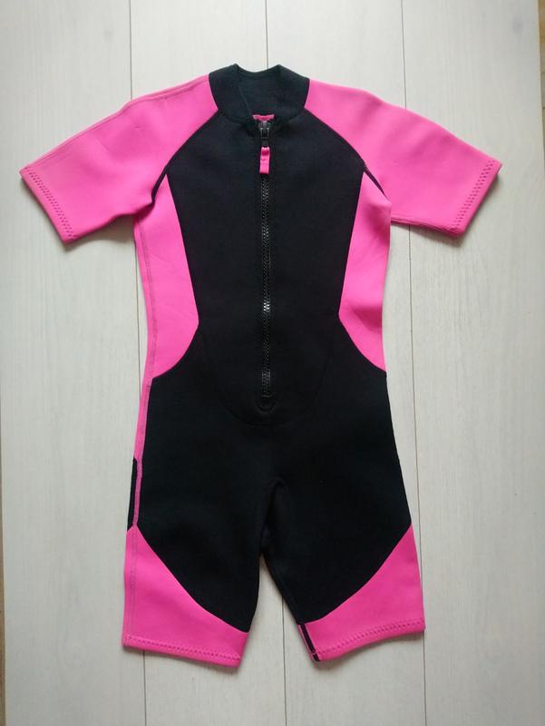 В очень хорошем состоянии. Спереди на замочке длинном. На возраст 11-12 лет. Товщина неопрену 1,5 мм. От плеча до низа 79 см, до паха 66 см. От горловины до паха 57 см. Под руками 36 см. Полуобъем пояса 32 см, бедер 38 см