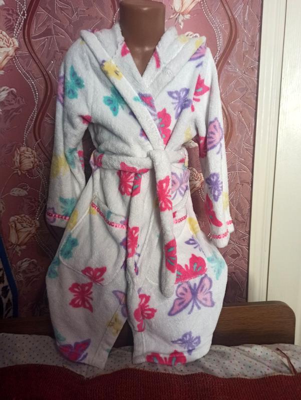 Теплий халат для дівчинки Marks & Spencer. Розмір - 7-8 років. Заміри: плечі 31 см, ПОГ 43 см, ПОТ 44 см, ПОБІДИ 46 см, довжина рукава 43 см, довжина 80 див. Тканина - велсофт. Склад: 100% поліестер. В дуже хорошому стані
