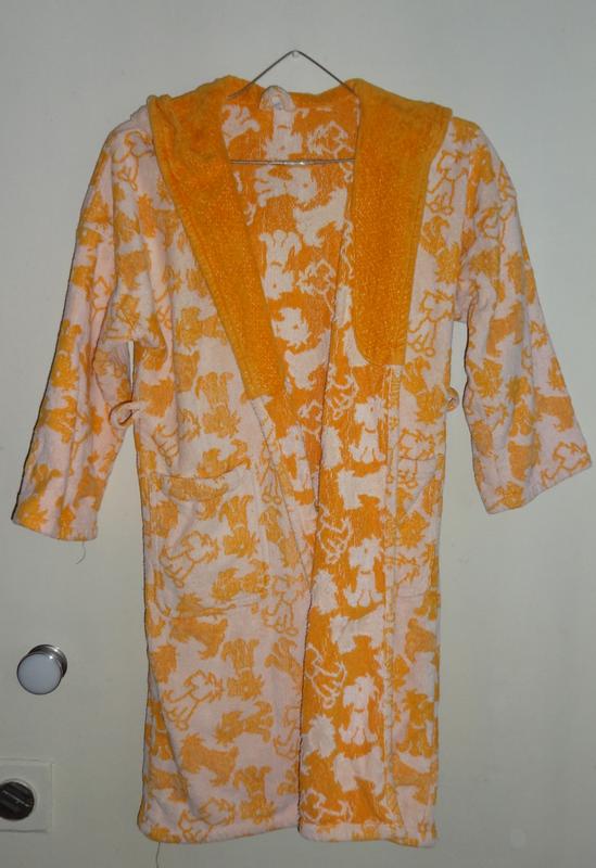 дитячий махровий халат на 8-10 років. НОГ 50 см; НОТ 45 см, НОС 50 см, довжина 84 см, довжина рукава від плеча 56 см. Товста двостороння махрова тканина. Виготовлений і придбаний у Німеччині. Халат в ідеальному стані. Пересилка по Україні Укріплої, Нової Пощой згідно з тарифами перевізника. Оплата на карту Приватбанка Лот не підлягає поверненню!