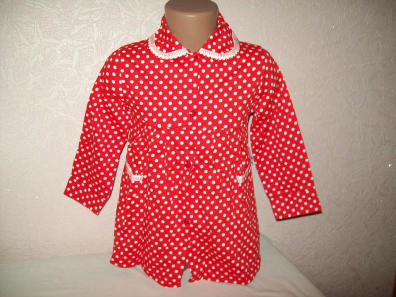 Длина 47 см, ширина 29 см, рукав от воротника 39 см Застегивается впереди на пуговицы 2 кармана Ткань кулир