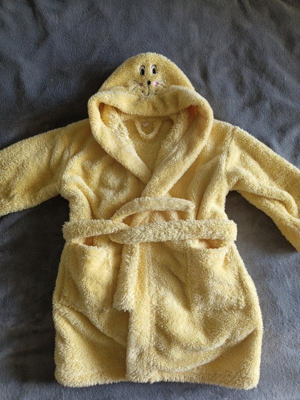 Мягкий детский халат желтого цвета на 5 -6 р. Шир по плечам 40 см, длина рукава 28, длина 56