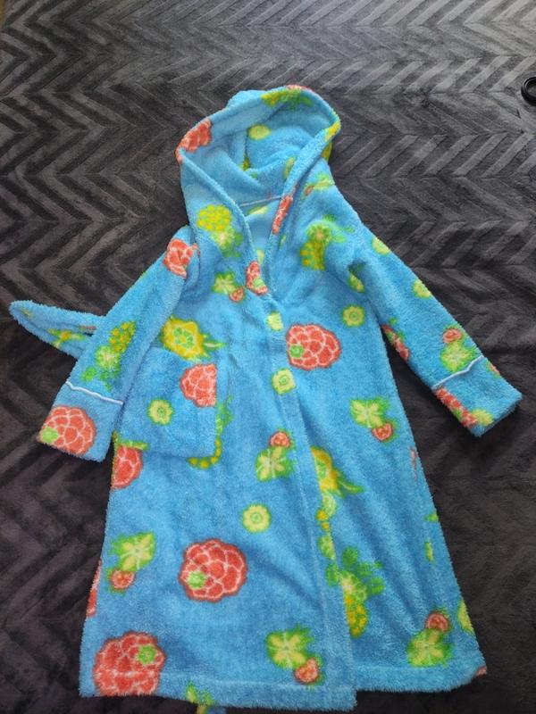 Махровий халат, розміри довжина 82 см, рукав 43 см. Є капюшон. Дуже теплий