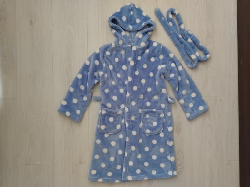 Теплий халат з поясом фірми M&S для дівчинки, в ідеальному стані. Є внутрішні зав'язки. Розмір по бірці 7-8 років. Заміри: довж.від плеча - 78см, пог - 41см, рукав від плеча - 43см, плече - 11см.