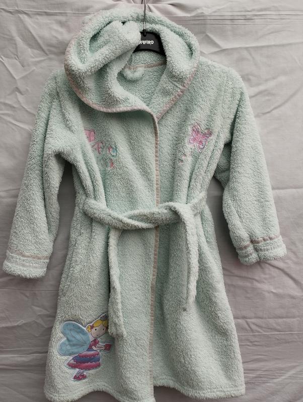 Теплый халат,для принцессы,на 6-7 рочков. Имеет нежно салатовый цвет.На спине в талии резинка. Пол о.г.- 42 ширина плечей - 38 длина рукава - 42 п.о.т.- 38 длина - 73