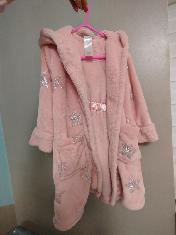 халат в дуже хорошому стані, без плям! розмір 3-4р м'який приємний на дотик, має капішон і вишеньки, на запах! довжина рукава 31см довжина самого халату 62см