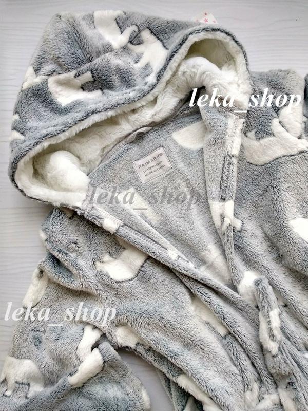 Розміри: 116 см(5-6 років), 122 см (6-7 років), 128 см (7-8 років). Флісовий теплий халат Primark з капюшоном сірого кольору в малюнок білого ведмедика. Зав'язка на поясі, два накладних кишені. Сучасний новий матеріал велсофт, легкий, м'який і пухнастий на дотик, дихає, зберігає тепло, не міняє колір і форму при пранні. Теплі флісові халати Primark зігріють навіть у найлютіші морози. Склад: 100% polyester (пухнастий фліс, велсофт) Без торгу. Задавайте питання до оформлення і оплати замовлення. Нижня білизна та піжами обміну та поверненню не підлягають! 100% оплата на карту Приватбанку або наложений платіж Новою поштою по передоплаті. Можлива оплата готівкою при самовивозі. Доставка: Нова пошта день у день - якщо замовлення оплачено до 12-00. Укрпошта по вівторках і четвергах - якщо замовлення оплачено до 9-00. Неділя вихідний.
