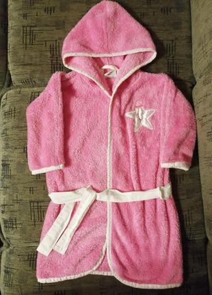 Халат махровый с хлопковой окантовкой Турция. Пояс из хлопка. Без дефектов, с капюшоном. Размер на 2-4 года. Длина - 62см, рукав-38см, ПОГ-42см. Цвет розовый.