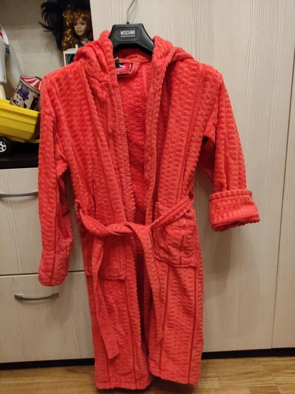 Продам халат для девочки в хорошем состоянии, качественный и очень приятный к телу. По бирке 12. Мы носили где то со 140, 146 рост. Подойдёт и на больше. рукав можно подкатывать. Цвет коралловый, чуть тусклее, чем на фото, но очень красивый