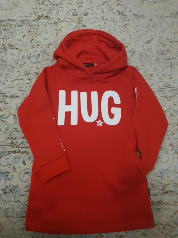 Тепла худі, з карманчиками, гарна якість. Довжина рукава від шиї 42.5 см. Довжина туніки 50.5 см.