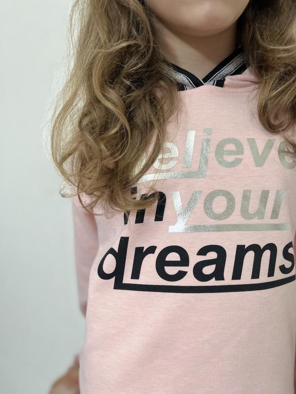 Модна кофта з принтом «провірь у свої мрії» 🔸Виробник: Туреччина 🔸Тканина: коттон ,поліестер 🔸Розмір: 5-6, 8-9, 9-10 років 💛ЦІНА: 460грн.
