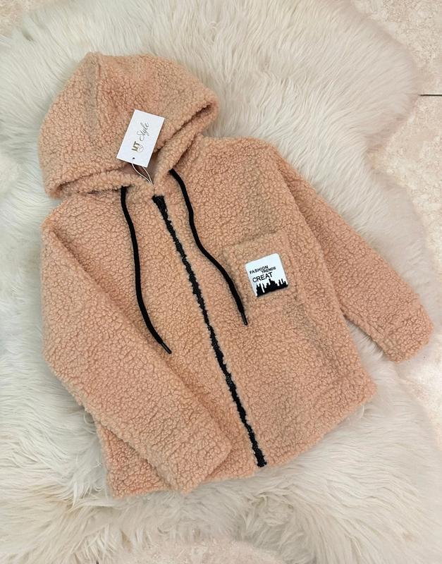 Для маленьких модниць! Куртка-сорочка на блискавці Тканина хутро-барашек Є капюшон і накладний карман. Заміри: 110 довжина - 46см, напівобхват грудей - 45см, рукав від горловини - 49см. 134 довжина - 57см, напівобхват грудей - 53см, рукав від горловини - 59см. Мс