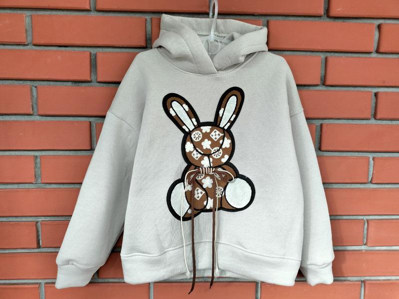 теплі худі з трендовою нашивкою тканина тринитка начос колір світлий беж аплікація пришита заміри: довжина / пог/ рукав від горловини, см 128: 50/48/57см 152: 57/52/64см допустимо +-2 см заміри вручну