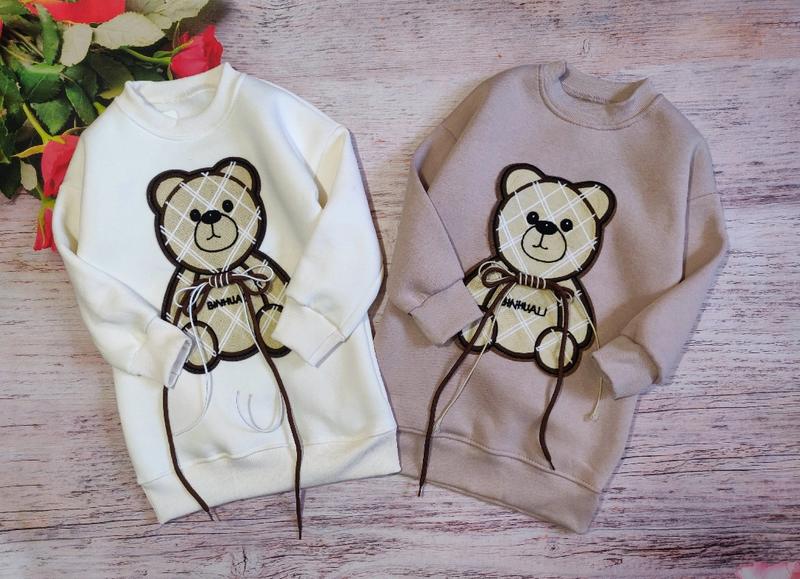 тепленькие платья-тунички🍁 По бокам есть карманчики✨ Ткань: Турецкая трехнить качество пенье с начесом (байка)🍂 замеры-длина\пог\рукав от горловины 104-57\39\48 110-61\40\51 молочный 104-1шт 110-1шт только полная оплата!!!!