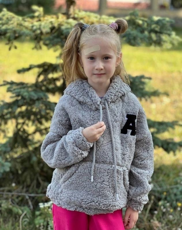 Тепленьке худі тканина тедді м'якеньке і дуже приємне до тіла є карман кенгуру РЕКОМЕНДУЮ! 128(2 шт)-довжина 48,пог 44,рукав 55/34 +-2 см Греб