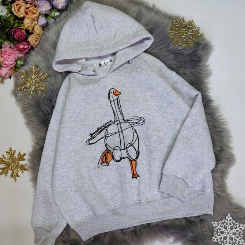 та трендовим якісним прогумованим накатом ГУСЬ-ОБІЙМУСЬ В капюшоні є утяжка Тканина-тринитка пеньє на флісі Супер якість!!! Зріст/довжина/пог/рукав від горловини похибка+-2см 140-146/52/53/57 158-164/61/58/66 164-170/64/60/68 🌝