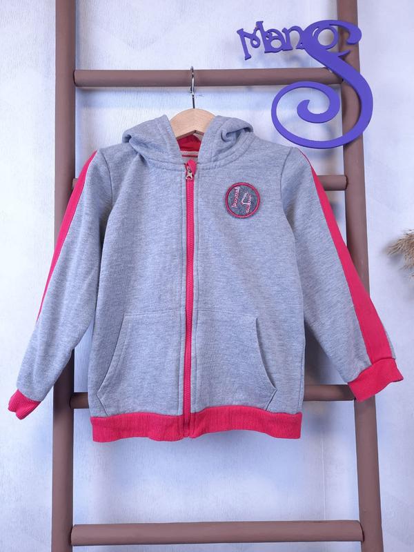 Тепле худі для дівчинки Poco Plano. З капюшоном, на блискавці. Колір сірий із рожевими вставками. Кишеня кенгуру, виворітна сторона флісова. Стан б/в, у відмінному стані Виробник Poco Plano Розмір 110/116 (5-6 років) Колір сірий, рожевий Склад 50% бавовна, 50% поліестер Виміри: напівобхват грудей 34 см, напівобхват талії 33 см довжина рукава 36 см, ширина по плечах 27 см, довжина 41 см