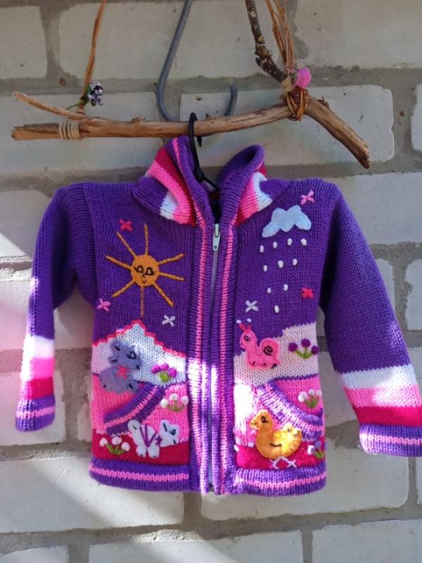 длина 35 по спинці, пог 26-27, рукав 27,на молнії, капішон глибокийтепла, красива, яскравий насичений колір, милі аплікації,позитивна, ручна робота, нова