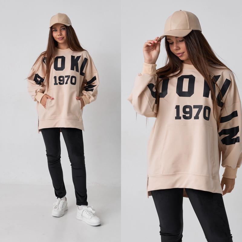 Таня Арт 5451 Крута новинка Худи с принтом С карманом кенгуру Оверсайз Тканина двонитка пенье Не кашлатиться Рекомендую Рост / длина по переду / пог / повар от горловины похибка+-2см 140/59/55/53-2шт 146/62/57/56-2шт 152/64/59/59-2шт 158/66/60/62-1шт