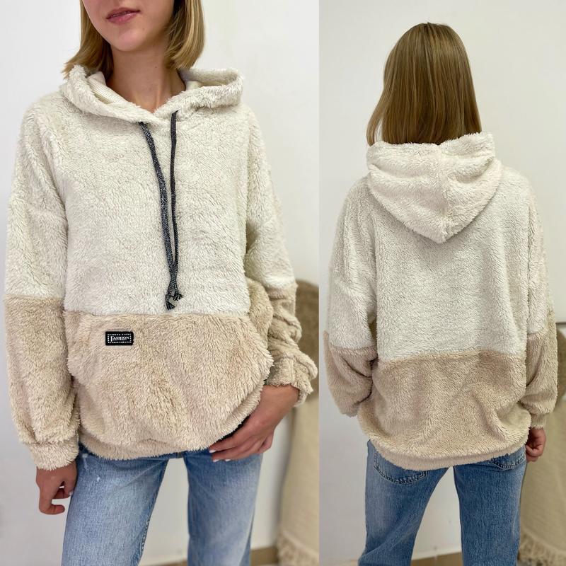 Теплий худі оверсайз з капюшоном, є кишеня тканина плюш-травка дуже м'який РЕКОМЕНДУЮ! Зріст/довжина/пог/рукав від горловини Похибка +-2см 134/54/47/54- 140/55/49/55- 146/56/50/56- 152/59/51/58- 158/61/52/63-÷