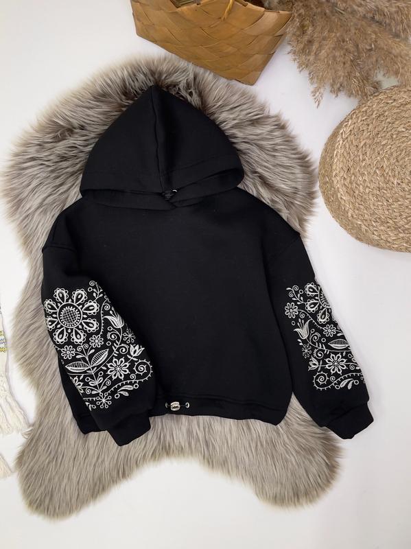 Таня Арт 5758 Худі із чарівною етно-вишивкою на рукавах з капюшоном та утяжкою понизу Тканина-турецька трьохнитка на флісі дуже приємна на дотик СУПЕР ЯКІСТЬ! зріст/довжина/пог/рукав від горловини похибка+-2см 152-158/52/57/64-1шт 158-164/55/58/67-1шт