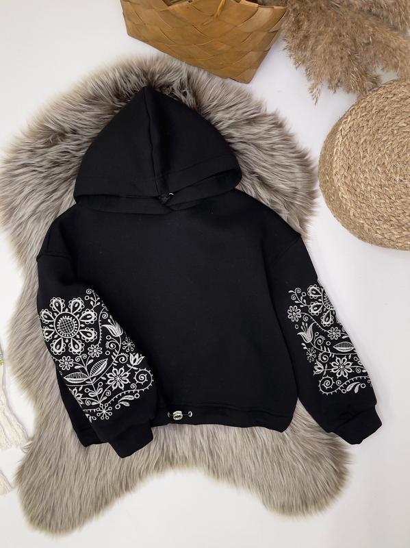 Худі із чарівною етно-вишивкою на рукавах з капюшоном та утяжкою понизу Тканина-турецька трьохнитка на флісі дуже приємна на дотик СУПЕР ЯКІСТЬ! зріст/довжина/пог/рукав від горловини похибка+-2см 140-146/46/53/57 146-152/49/55/60 152-158/52/57/64 158-164/55/58/67 164-170/59/60/71