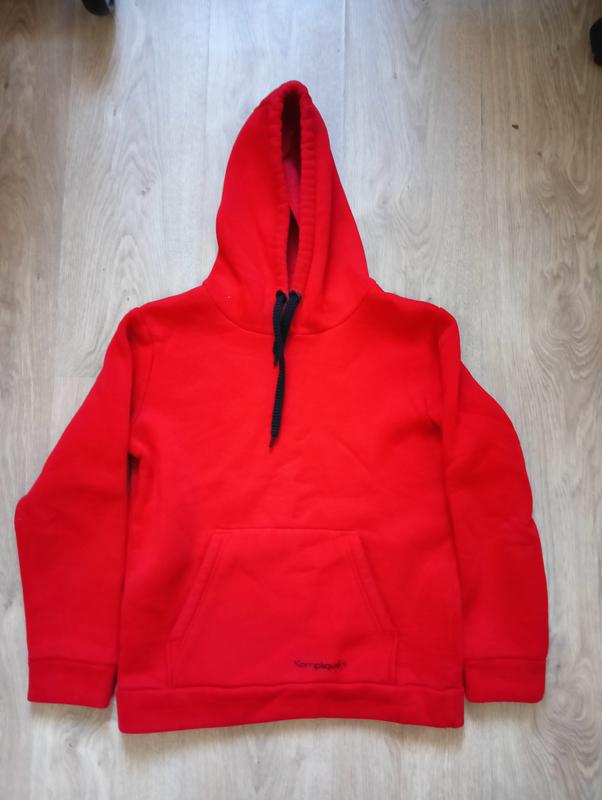 Красное худи на флисе. Теплое, в хорошем состоянии. размер 152. на фото издается ярче. длина 55, рукав 50, полуобхват 47