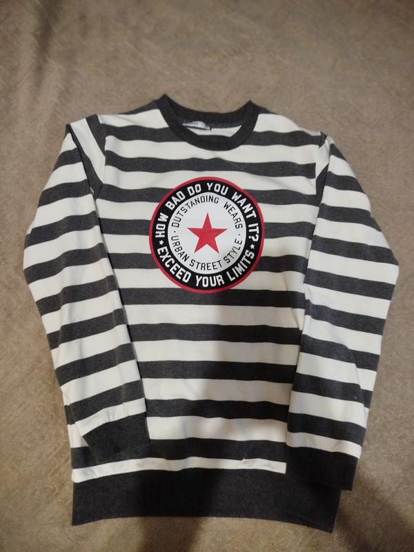 Подовжена смугаста кофта в стилі конверс. Без утеплення. Стильна та зручна. Підійде для дівчинки 8-11 років. Стан ідеальний. Відправка Укрпошта або Нова