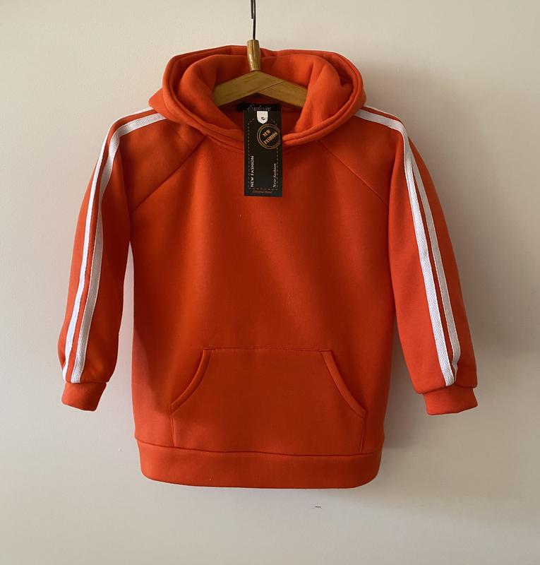 Тканина — трикотаж із начосом. Колір — оранж Заміри — пог — 38 см, довжина спинки — 45 см, рукав від плеча — 41 см.