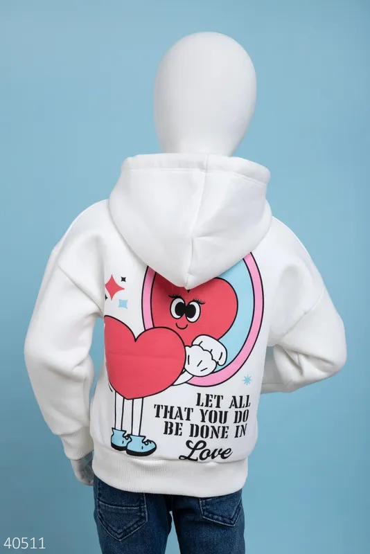 Світшот для дівчаток 50627-0-3 білий худі сердечко на флісі