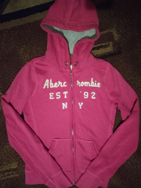 Дівчача рожева худі на блискавці з написом "Abercrombie EST '92 NY".
