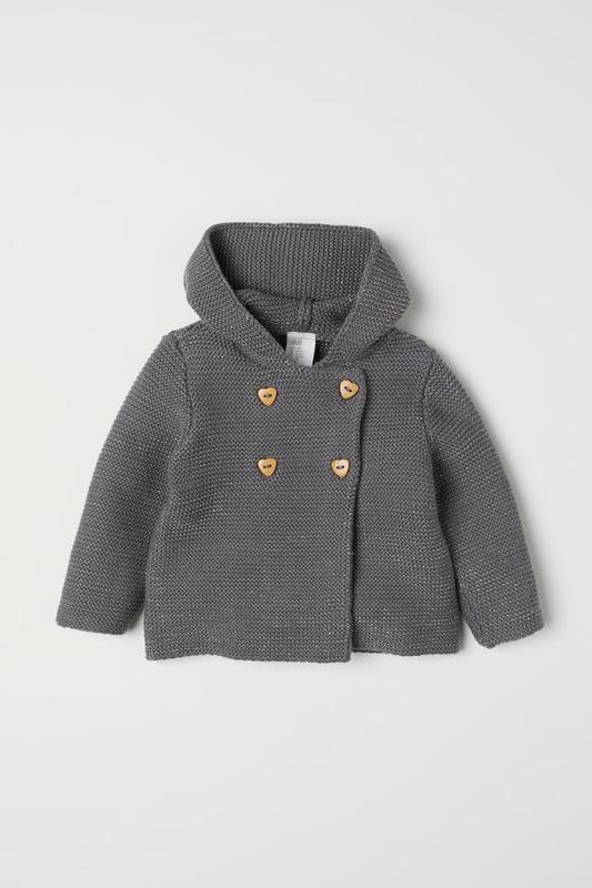 Красивенний у язаний кардиган з капюшоном для дівчинки від H&M 80 см на вік 9-12 міс (буде і на18 міс за рахунок фасоном, ну і речі HM великомірять) Заміри: Довжина по спинці від плеча 33 см Довжина рукавчка від шва 27 см Ширина під рукавчиками 29,5 см (ПОГ) Пишіть - пришлю додаткові фото. Нам, нажаль, не підійшов бо в нас хлопчик (хоча на сайті цей кардіган чомусь іде в розділі для хлопчиків)