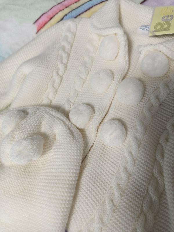 Очень красивый и стильный вязаный кардиган для девочки, молочного цвета. В комплекті йде шапочка. Новый, с биркой. Размер от 0 до 3 месяцев. Идеально подойдет на праздники и для повседневных прогулок. Кардиган элегантно подчеркивают пуговицы. По дополнительной информации пишите в частные сообщения. Отправлю удобным для вас способом.