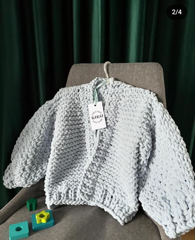 В'язаний дитячий кардиган-оверсайз. Дуже приємний на дотик, наче огорнений в плед.
