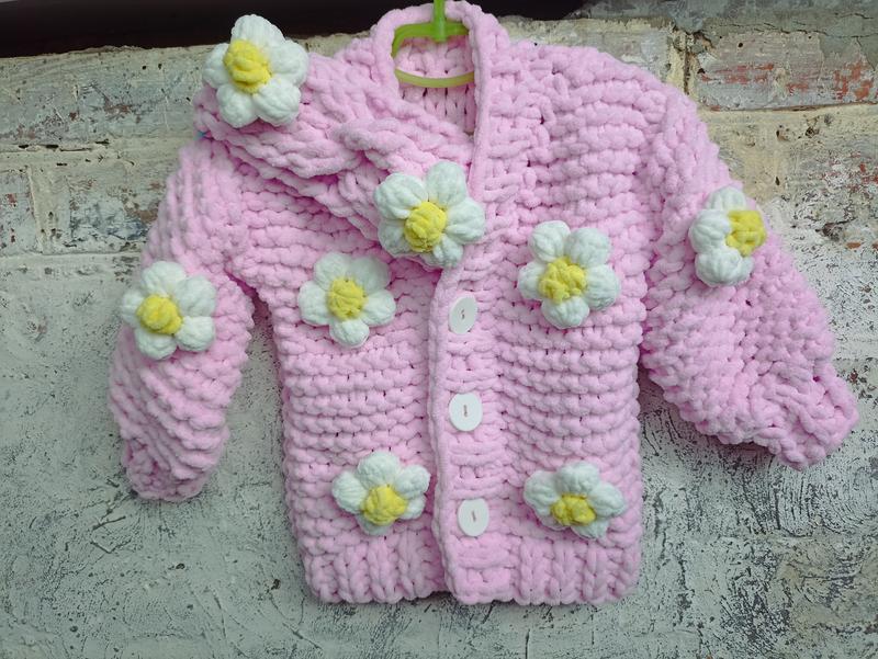Супер теплый, мягкий, оригинальный кардиган для девочек с повязкой Возможно изготовление без цветов, без повязки с другим узором За деталями пишите в сообщения