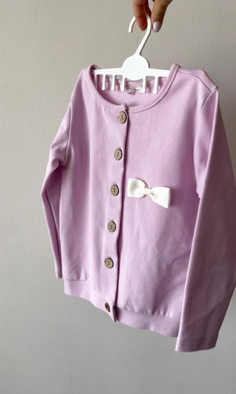 Кофтинка-кардиган на дівчинку. Ніжний бузковий колір, на ґудзиках. Дуже гарна якість, виробництво Туреччина. Розмір на 3-4 роки. Заміри: довжина 39см. Напів обхват 32см, довжина рукава 36см Ціна - 420грн 🏷️