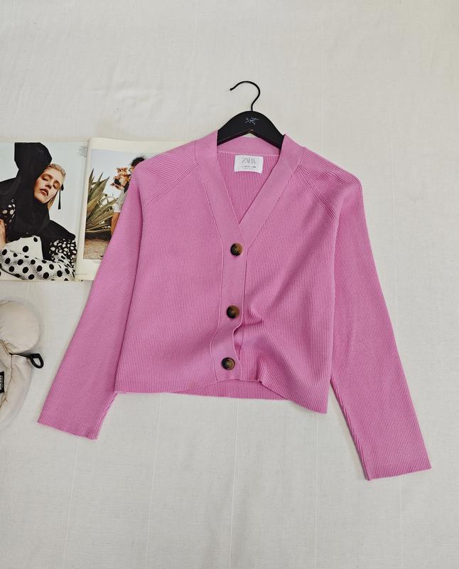 розовый кардиган от Zara свободного кроя для девочки 13-14 лет на рост 164 см, ПО груди 47 см, длина 48 см, рукав от горловины 61 сс
