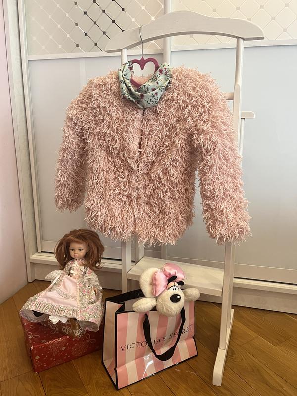 Кардиган для девочки 5-6роков розового цвета с серебряными нитями. Один раз одягали.